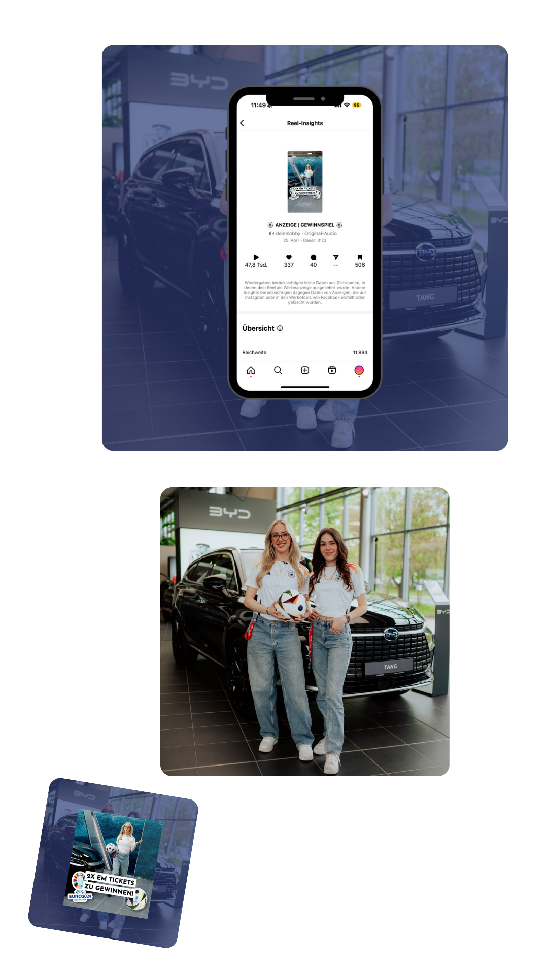 Wir fangen Momente, Aussagen und Kampagnen perfekt mit unserem Content Team ein. Im nächsten Schritt schalten wir auf die hochwertigen Videos Werbung und erreichen so einen noch höheren Traffic als mit herkömmlicher Werbung. Wir konnten mit unserem Kunden Sternauto / BYD im Rahmen einer tolle EM Aktion mit einem professionell produzierten Video über 50.000 Personen aus der Region innerhalb einer Woche erreichen.